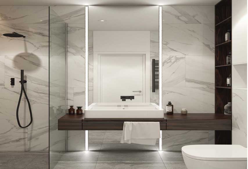 If you decide to go with the traditional look or a custom Bathroom vanity design, before you begin, make sure there is enough space to achieve the design you’re looking for. A bathroom vanity typically includes the sink, countertop, and storage area for linens, toiletries, and mirrors.